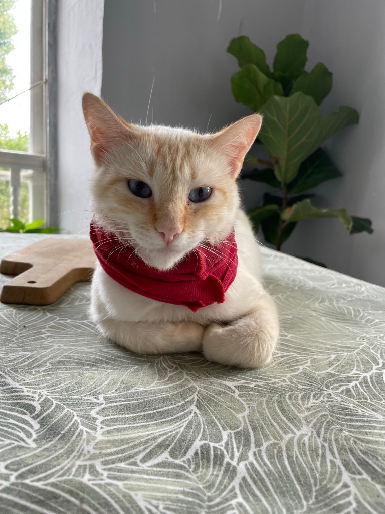 Todavía no tenemos muchas fotos de Mango. Supongo que cuando mejore de las heridas le haremos más, porque es muy gracioso con su cola cortada (seguramente nació así).